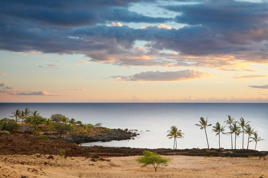 Leeward Kohala, seen above is hot and dry, with barren lava fields along most of the coastline. Above: sunset at Lapakahi Historical State Park.