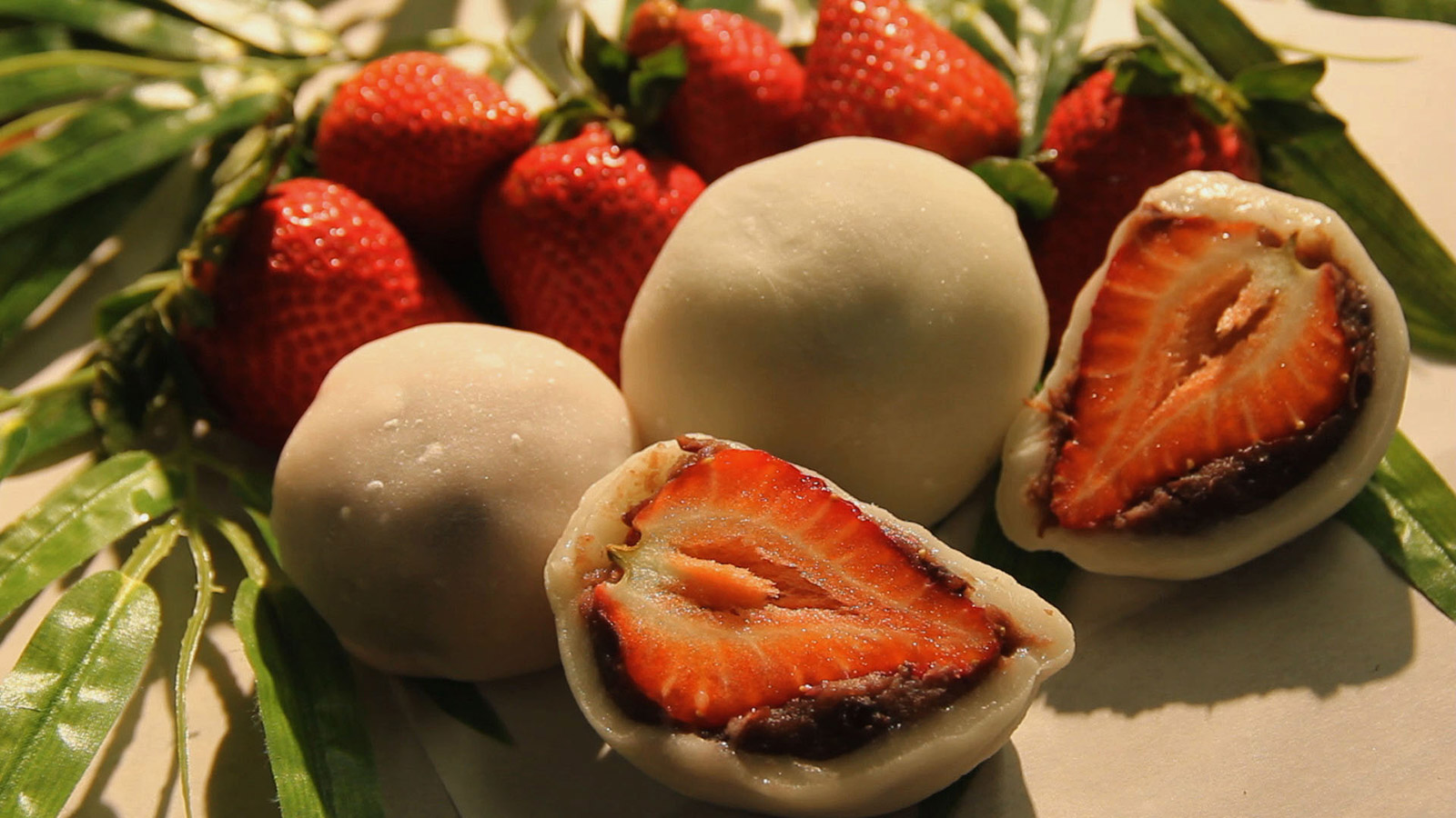 Above: Fresh strawberry mochi from Two Ladies Kitchen in Hilo are a popular omiyage gift.