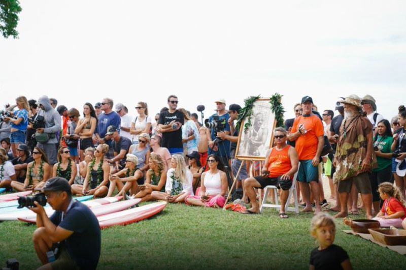 Above: Invitees to The Eddie gather round for a solemn moment during Opening Ceremonies.